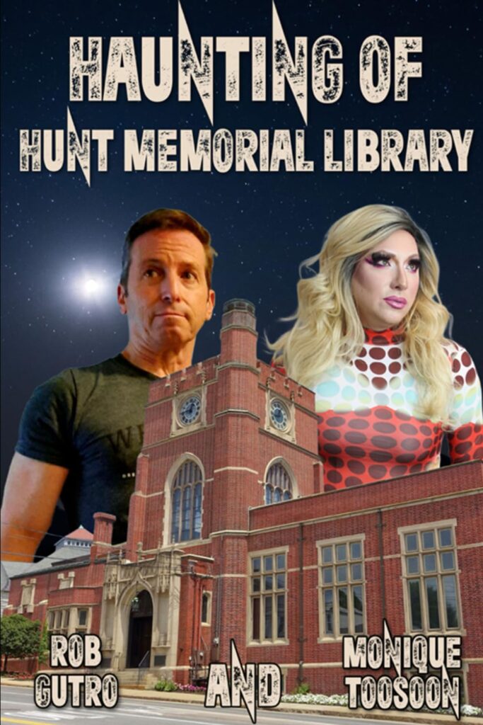 After a book signing event in a former library, Medium Rob Gutro and Paranormal Drag Queen and Tech wizard, Monique Toosoon led a public paranormal investigation in the historic Hunt Memorial Library in Nashua, New Hampshire in search of paranormal activity. They were joined by other paranormal professionals and members of the public for this event.
